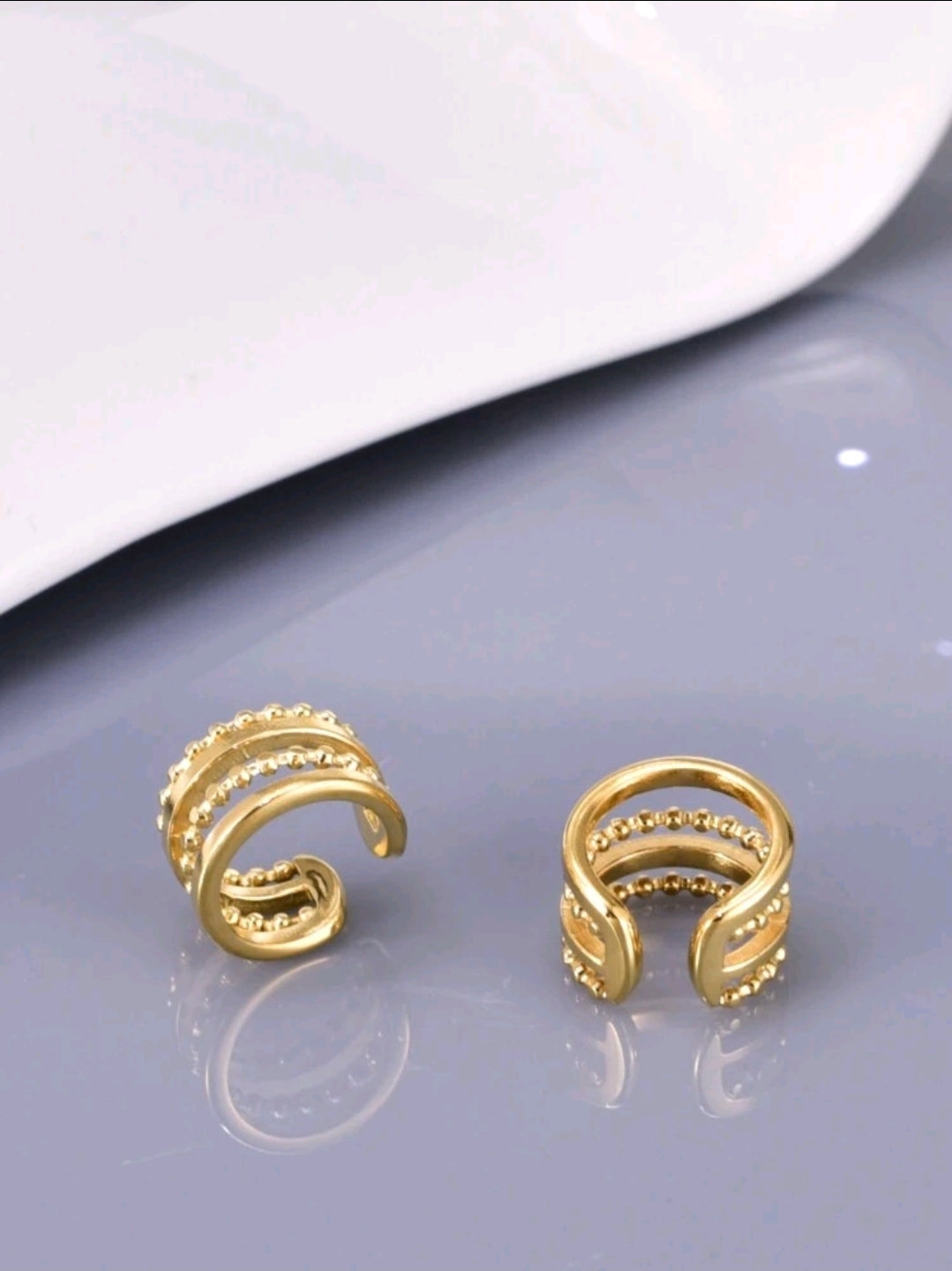 paire de clips d'oreille en acier inoxydable dorés, accessoires personnalisés, boucles d'oreilles sans perçage, clips d'oreille à trois fils