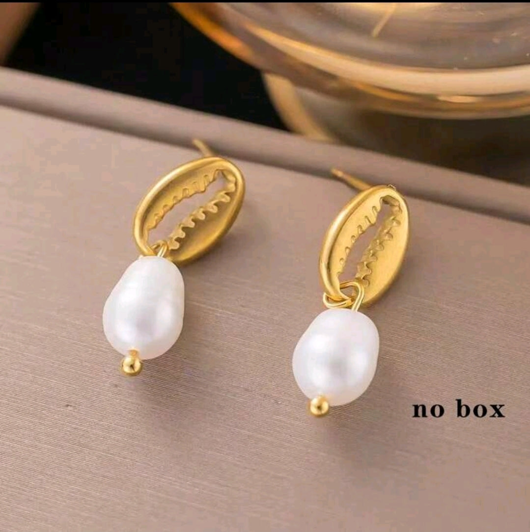 Paire de boucle d'oreille en inoxydable perle caurie
