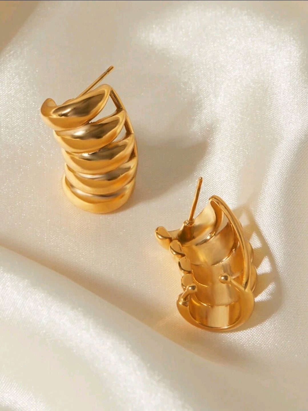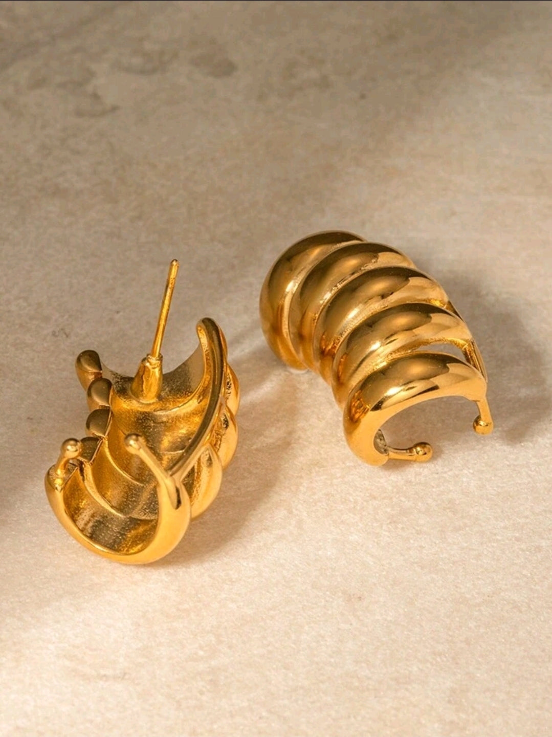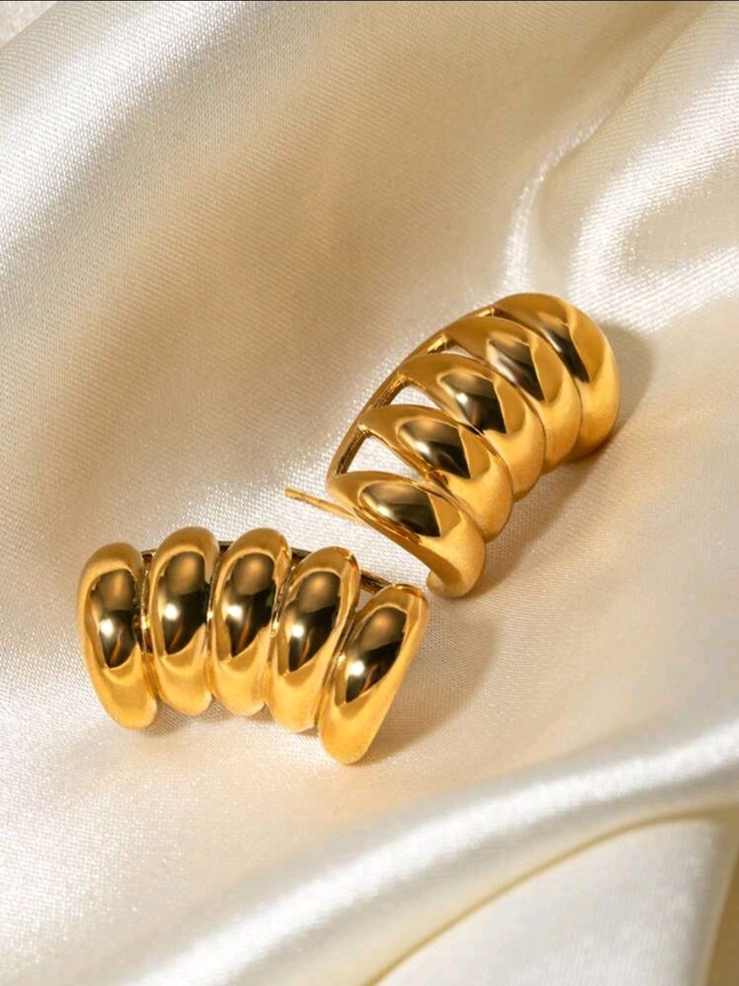 Paire de Boucles d'Oreilles Évidées Rayées en Acier Inoxydable Plaqué Or 18 Carats