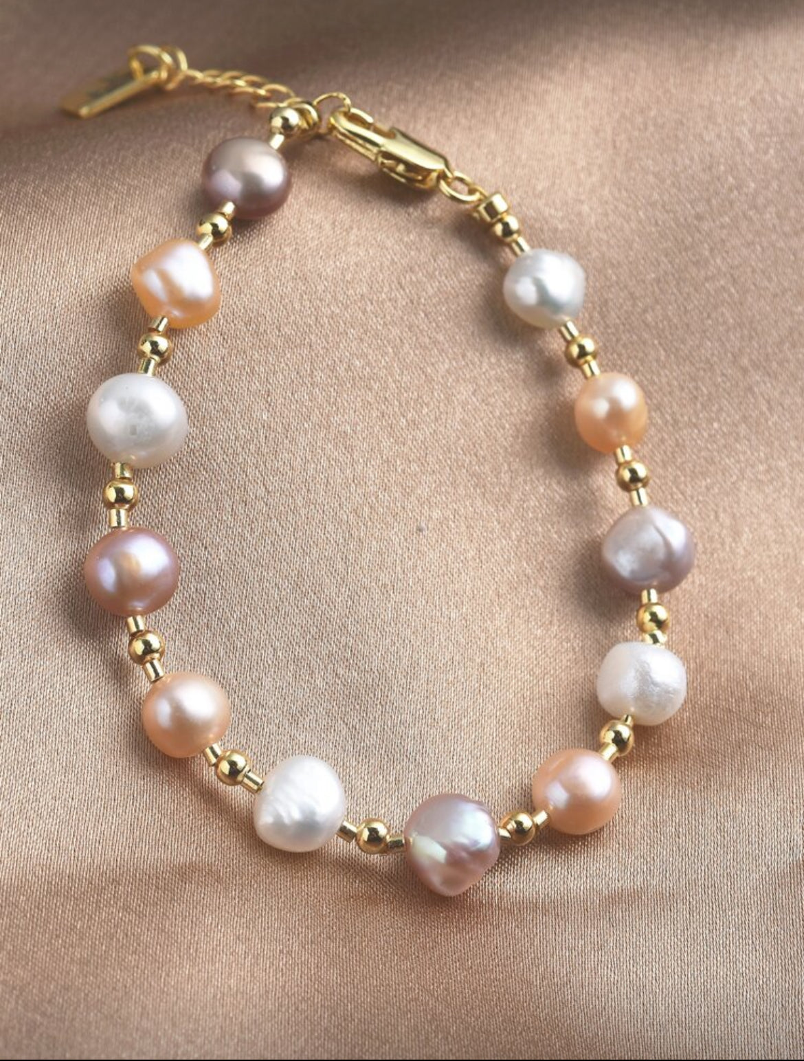 Bracelet en perle naturelle plaqué or 18K, en argent sterling