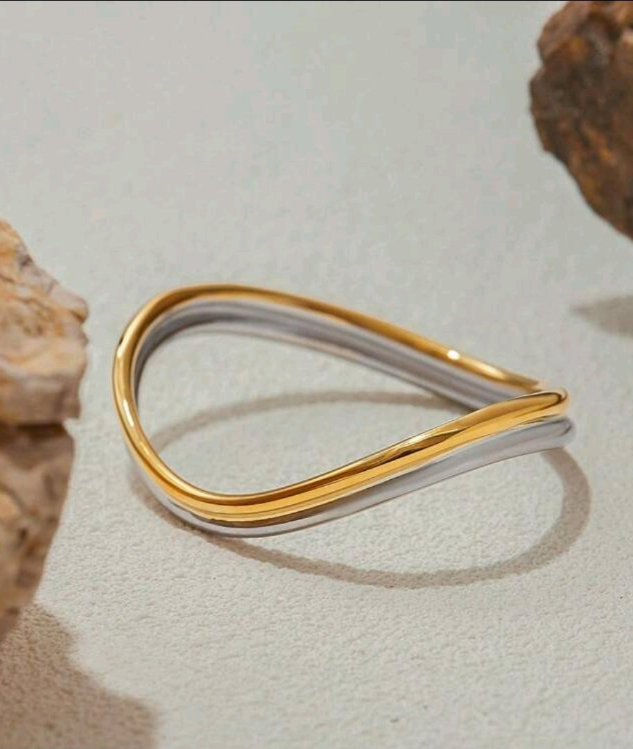 Bracelet à double lignes ondulées de deux couleurs, plaqué or en acier inoxydable