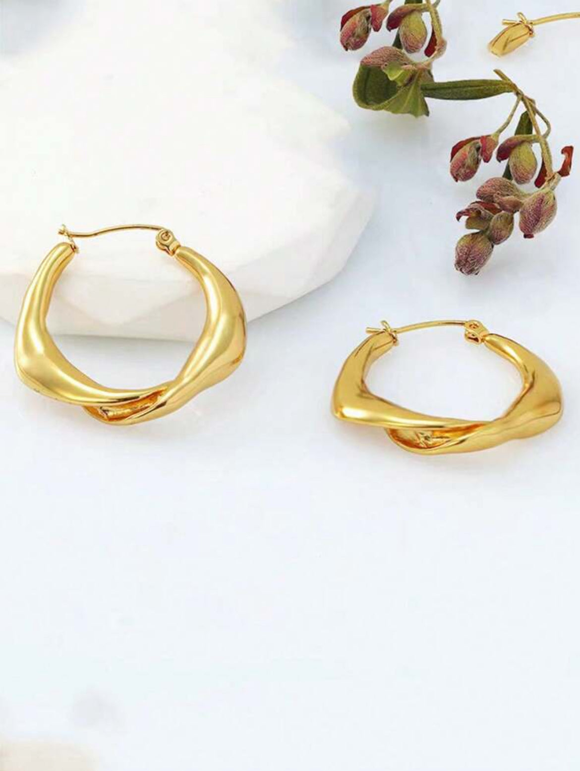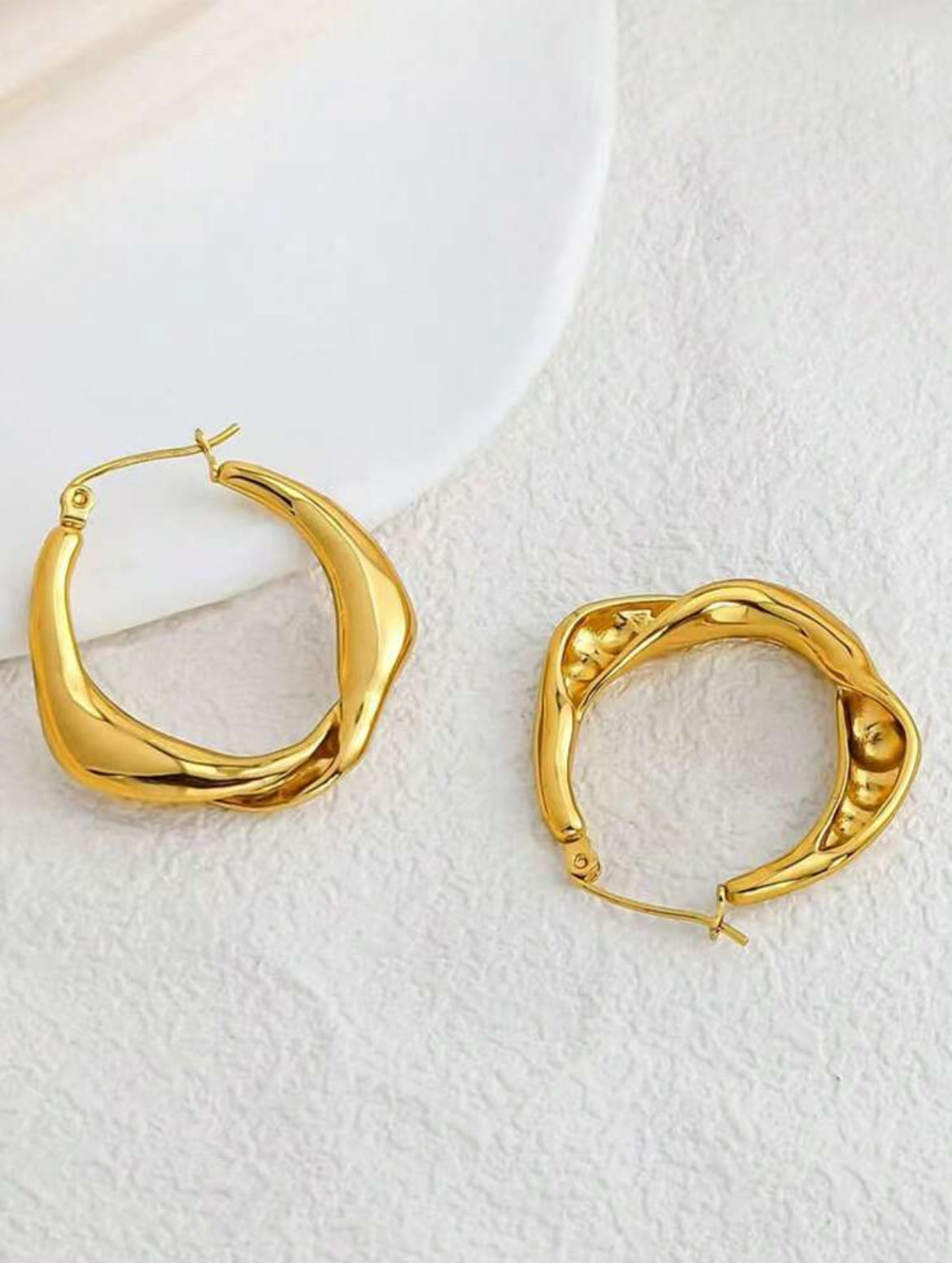 Boucles d'oreilles créoles en forme de C texturées en acier inoxydable