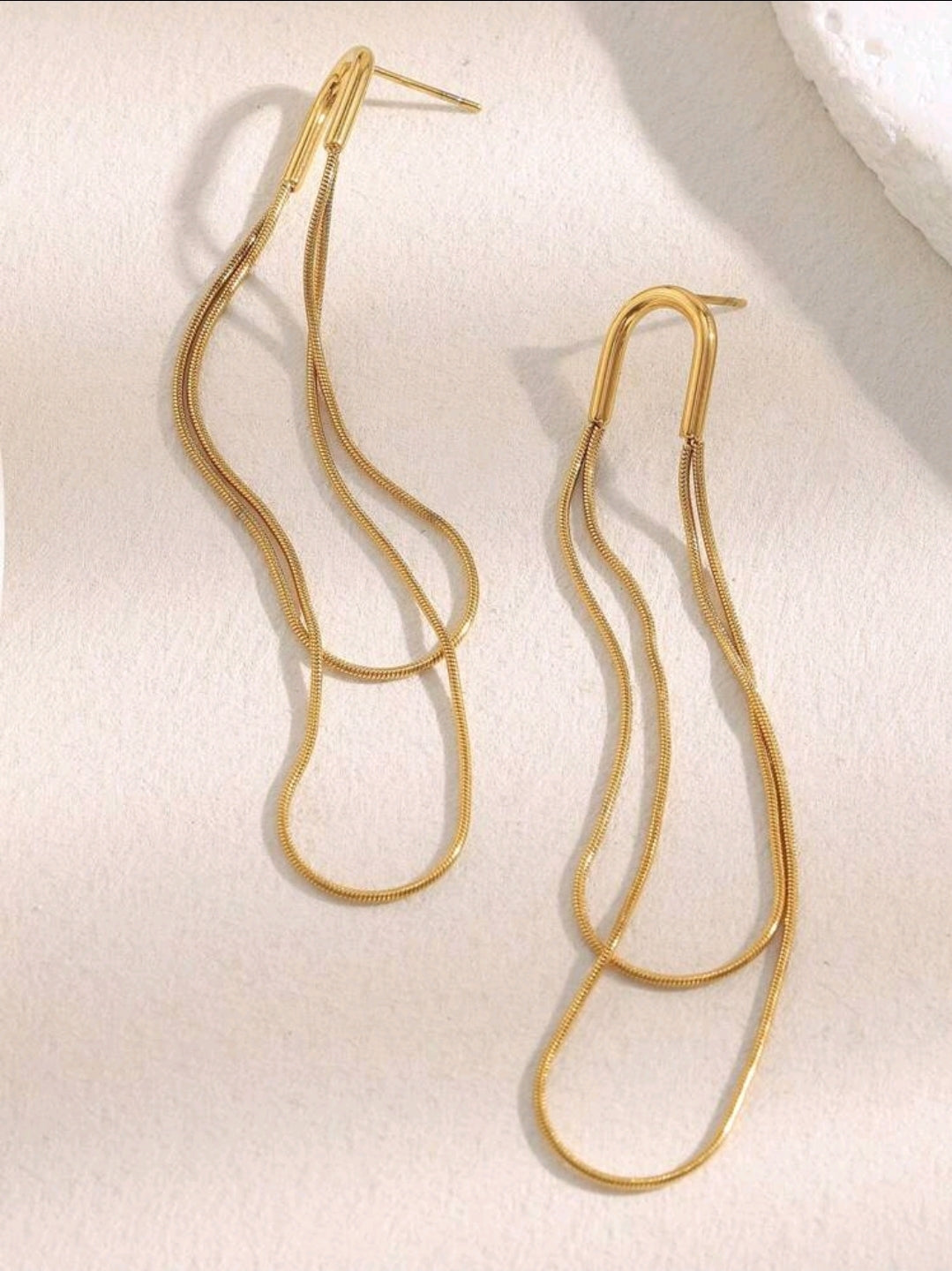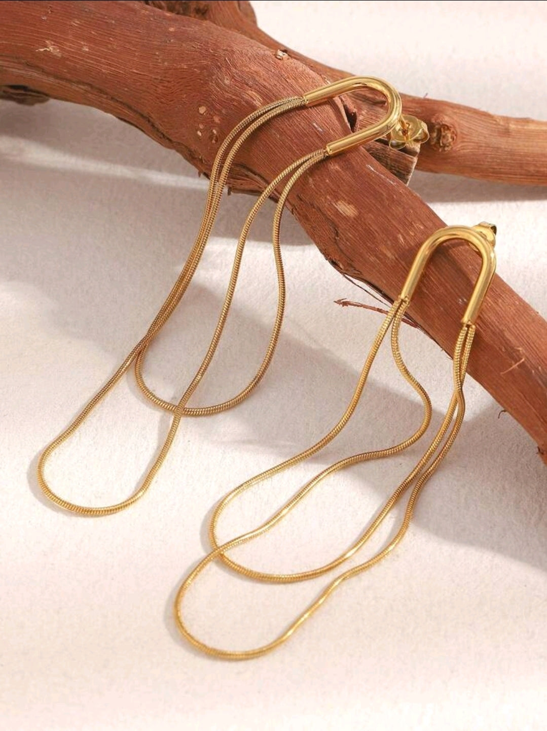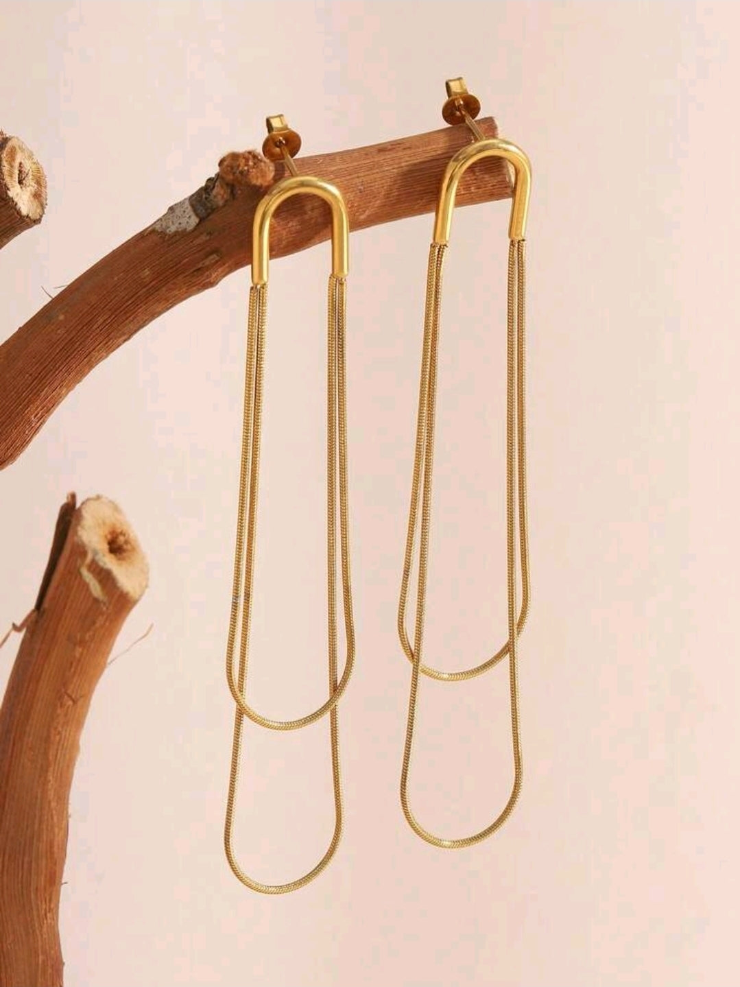 Boucles d'oreilles longues et affinantes de haute qualité en acier inoxydable plaqué or 18 carats, design simple et épuré