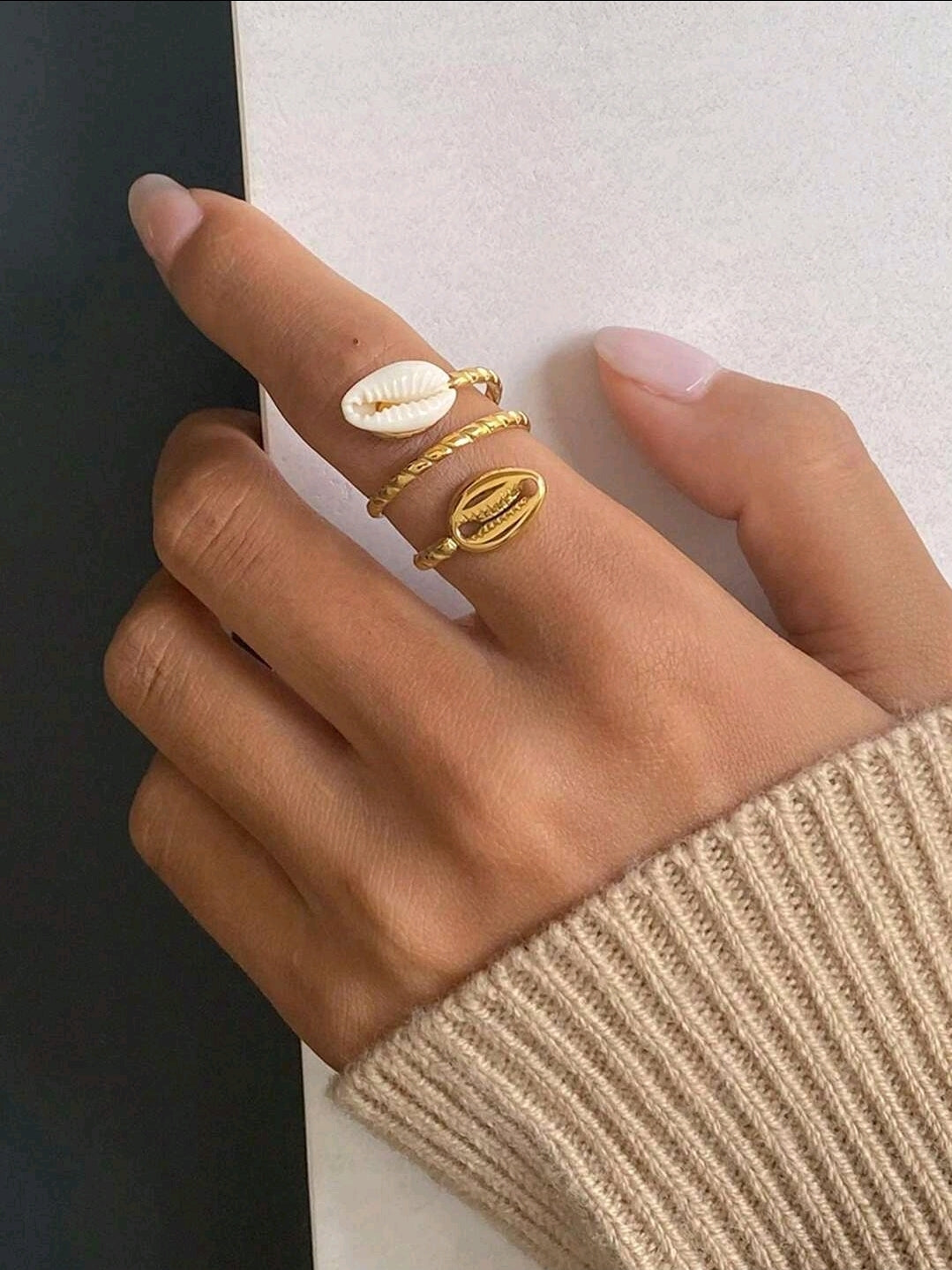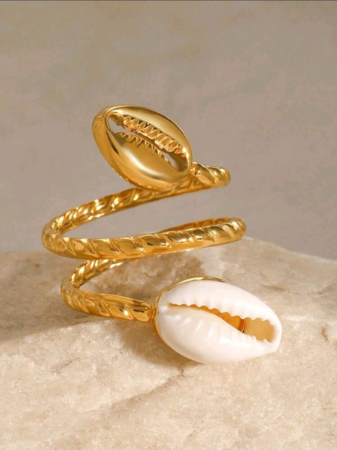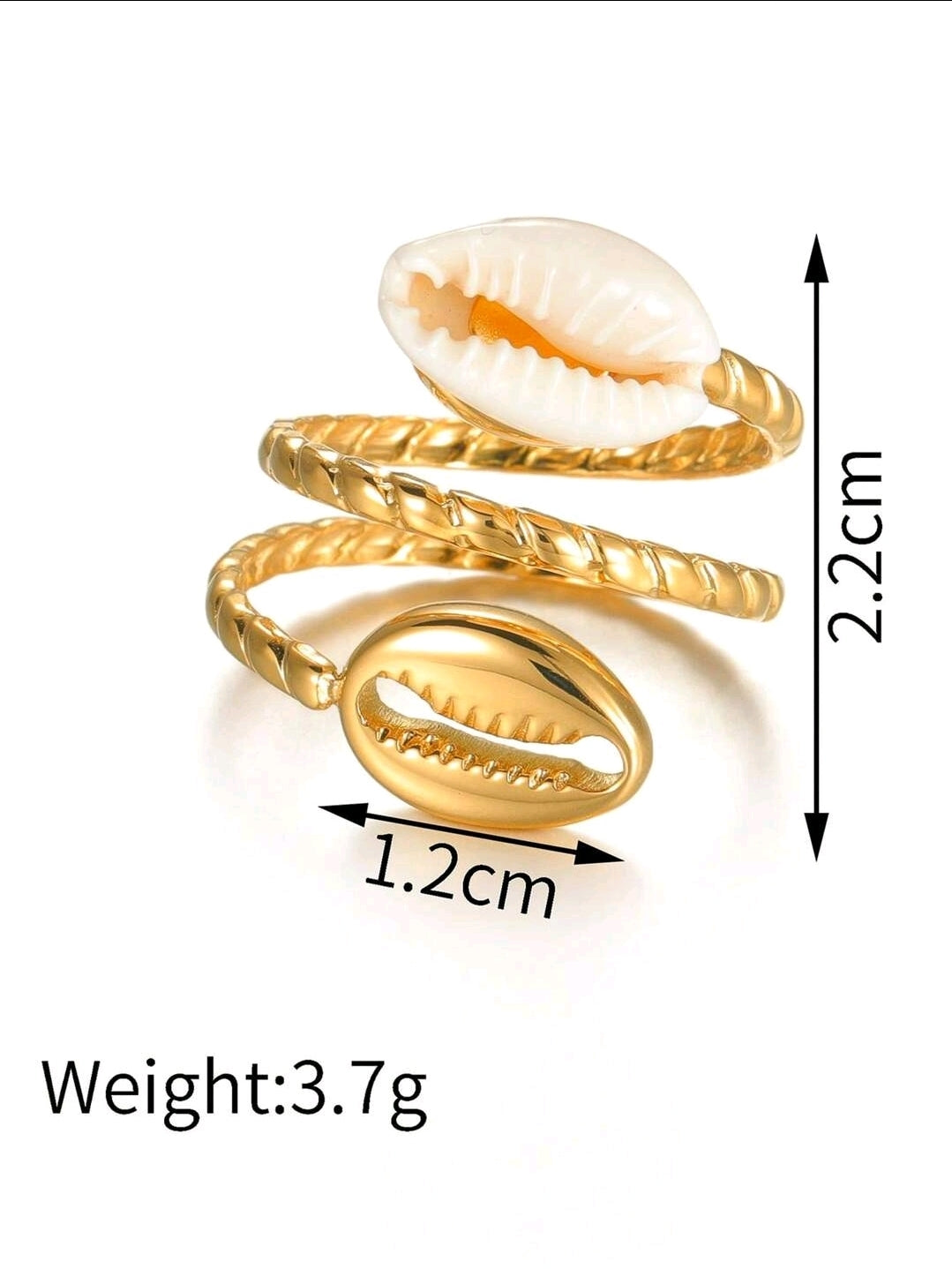Bague ouverte ajustable minimaliste vintage en acier inoxydable plaqué or en forme de caurie