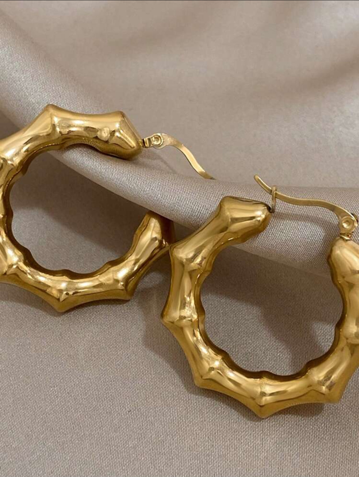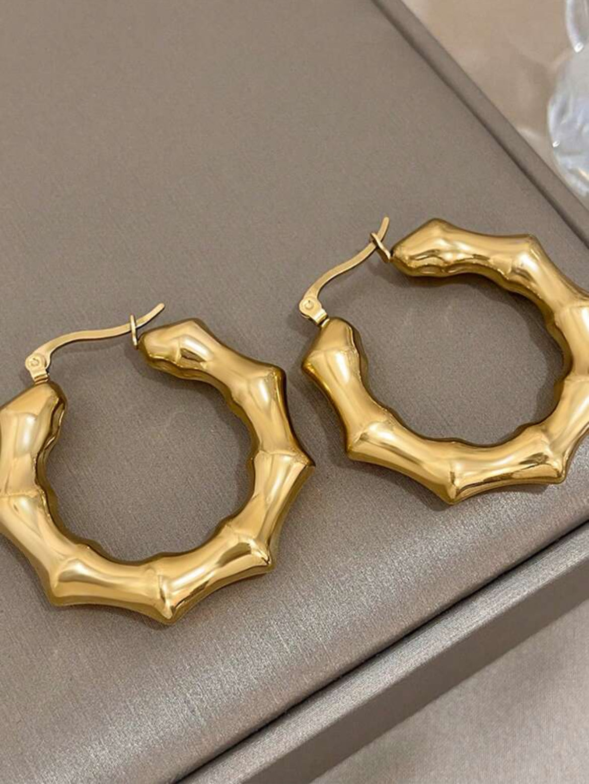 Boucles d'oreilles créoles en bambou creux, boucles d'oreilles en acier inoxydable pour femmes, créoles épaisses