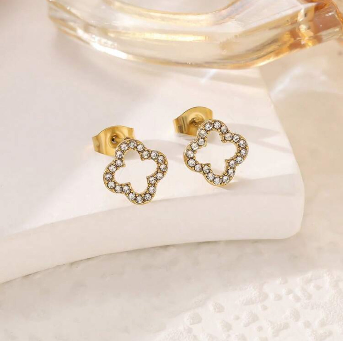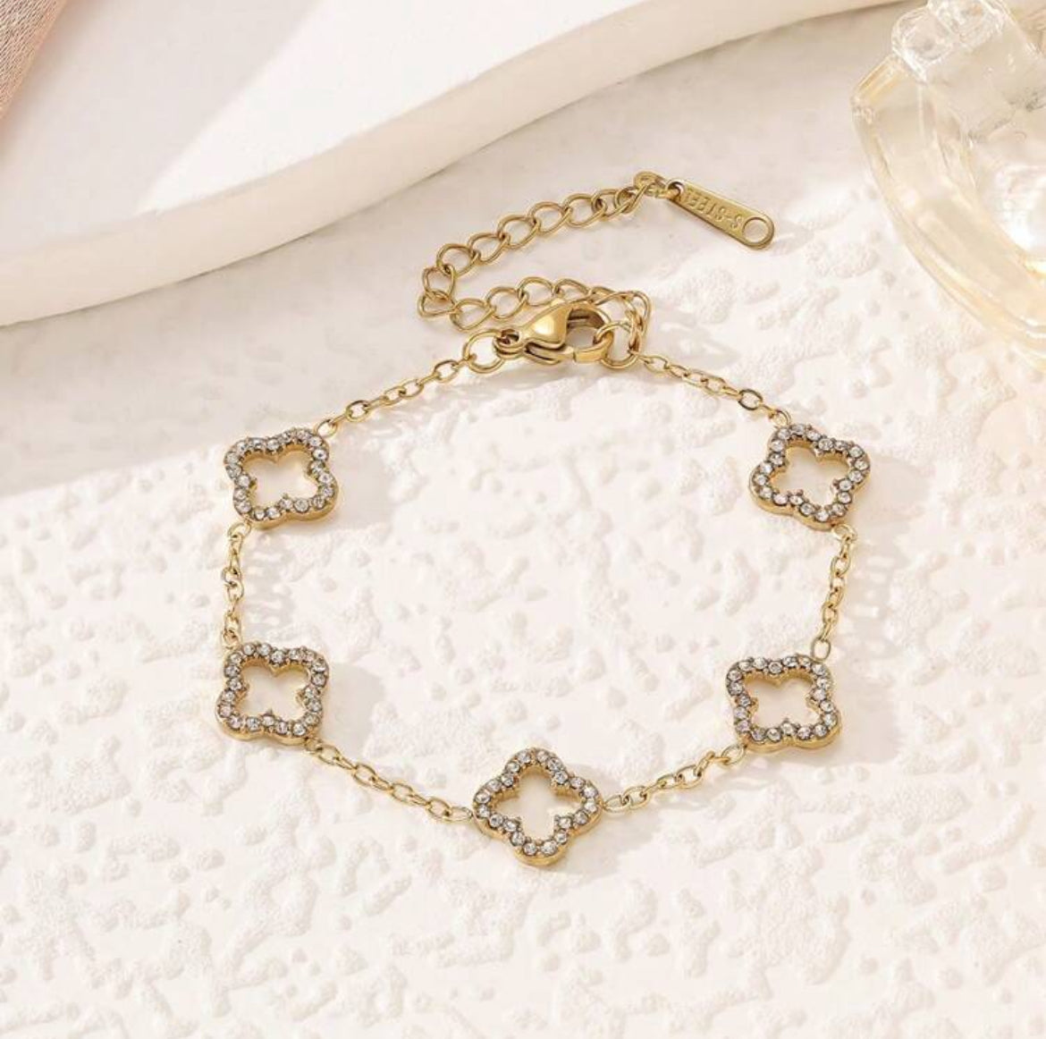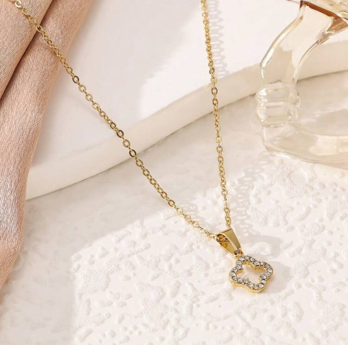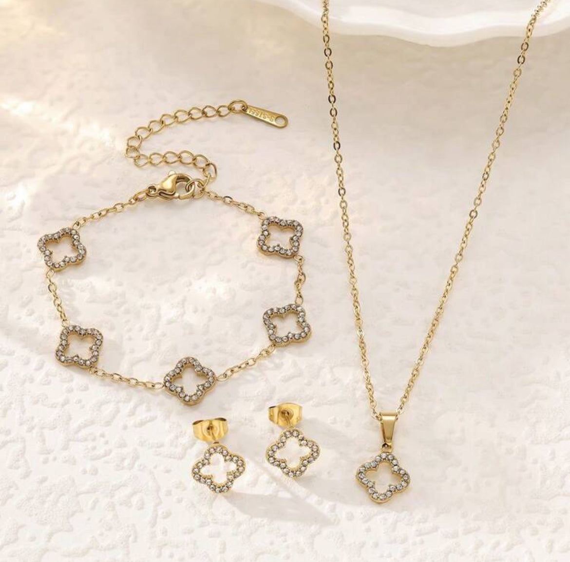 4 pièces Set de bijoux en acier inoxydable avec diamant creux, comprenant un collier, des boucles d'oreilles et un bracelet pour femmes