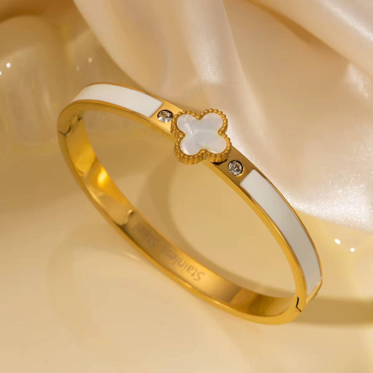 Bracelet en acier inoxydable plaqué or avec trèfle à quatre feuilles avec placage à l'huile goutte à goutte