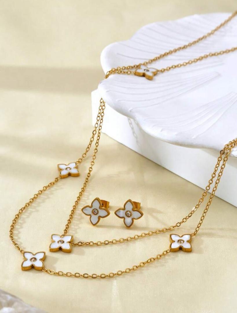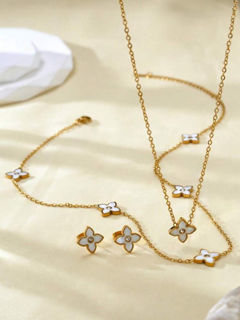 Ensemble de bijoux en acier inoxydable trèfle à 4 fleur boucle d'oreille Bracelet collier